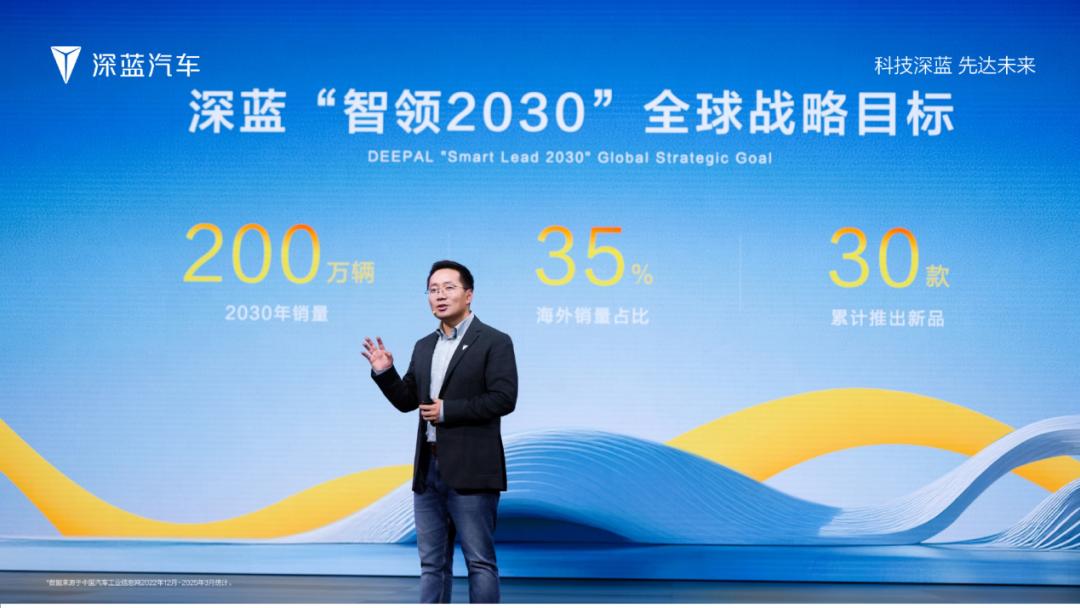 在深藍汽車三周年的發展節點,“智領2030”戰略已經浮出水面。按照“智領2030”戰略,深藍汽車計劃2030年全球年銷量達到200萬輛,海外銷量占比達到35%,并將累計推出30款新產品,夯實央企新能源銷量冠軍的行業地位。
