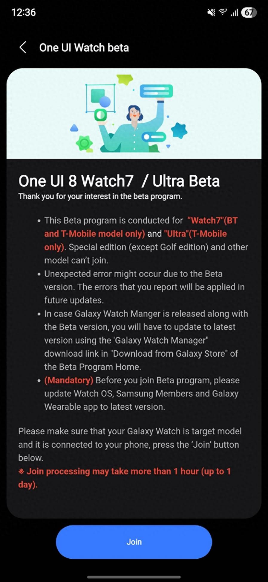 目前,One UI 8 Watch 測試計劃已在韓國和美國同步啟動。在美國,這個版本僅對 Galaxy Watch7 藍牙版和 T-Mobile 網絡下的 LTE 版 Galaxy Watch7 與 Watch Ultra 開放。