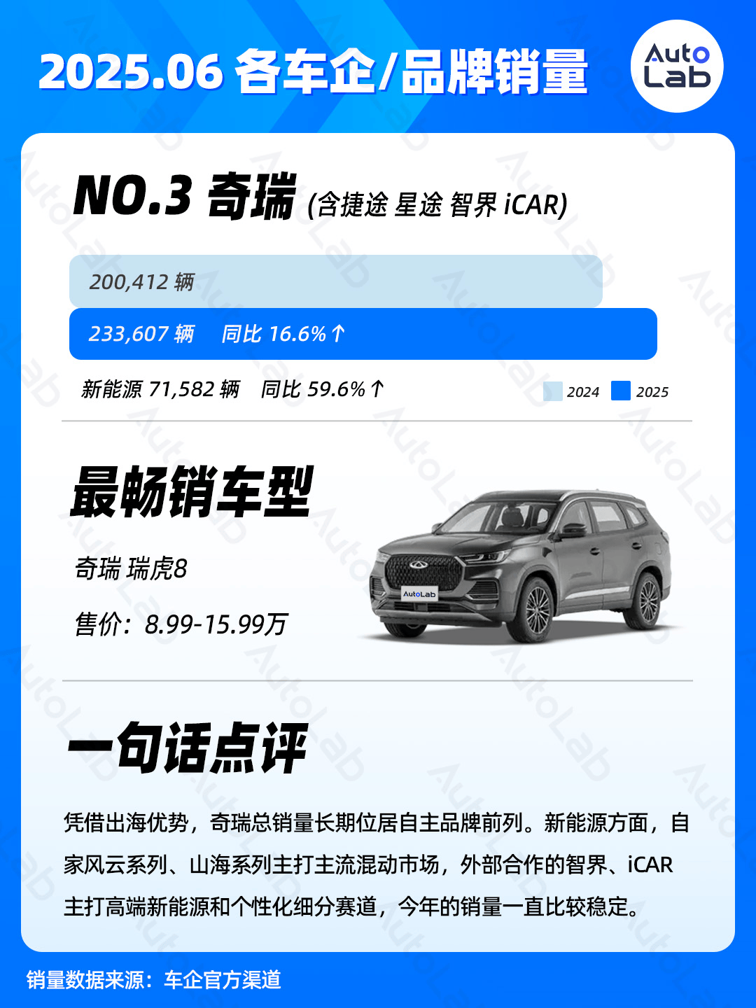 奇瑞新能源這次貢獻了7.15萬的銷量,同比增長59.6%,主要還是依靠混動車型。