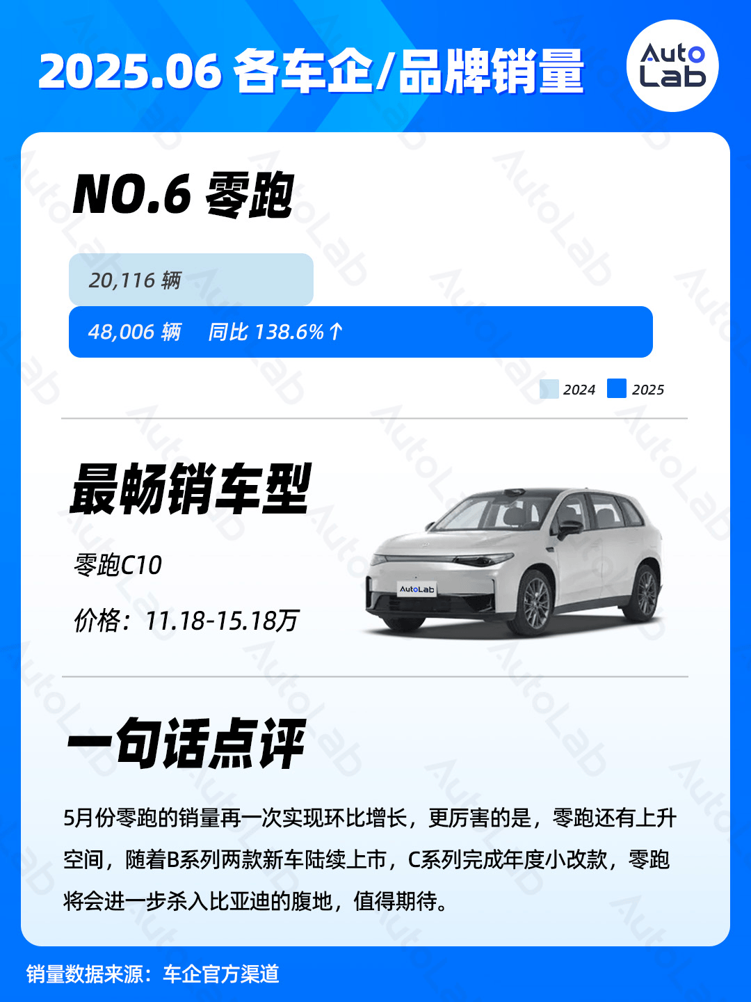 從單一品牌的維度來看,6月份零跑依然是新勢力銷冠。