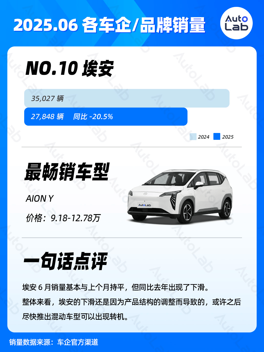 埃安6月份的銷量相比上月基本持平,但相比去年也出現了下滑。