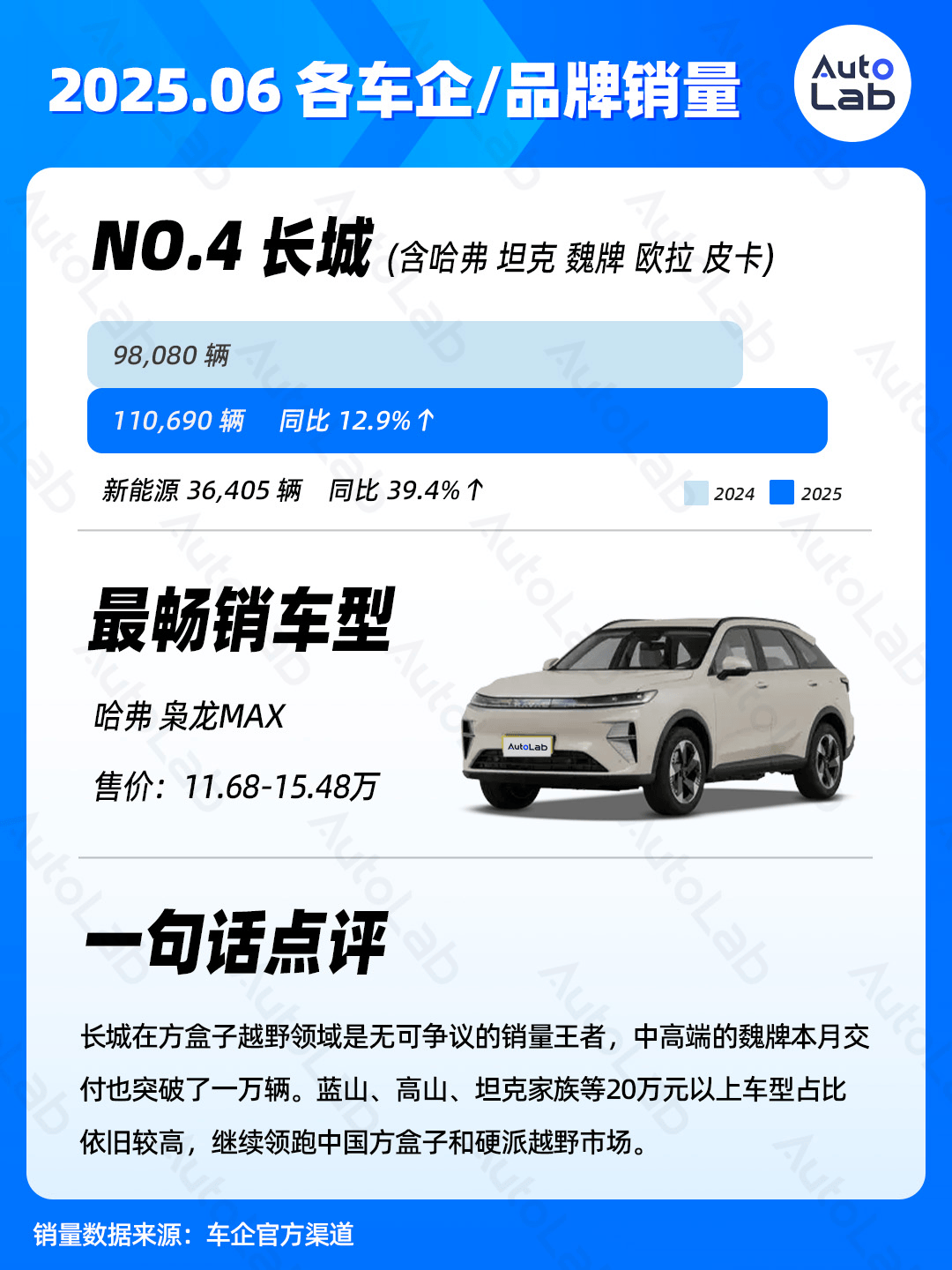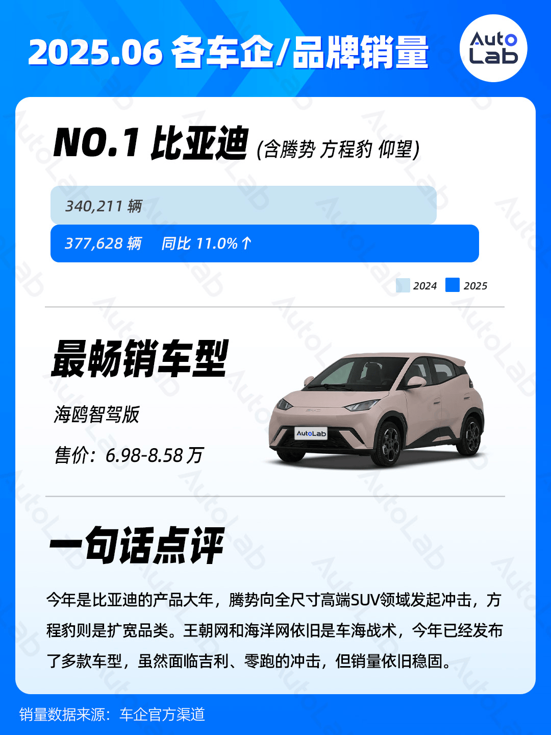 • 五大自主車企中,比亞迪總量持續領先,吉利漲幅最大,長安僅公布上半年銷量,但未公布6月份具體銷量。