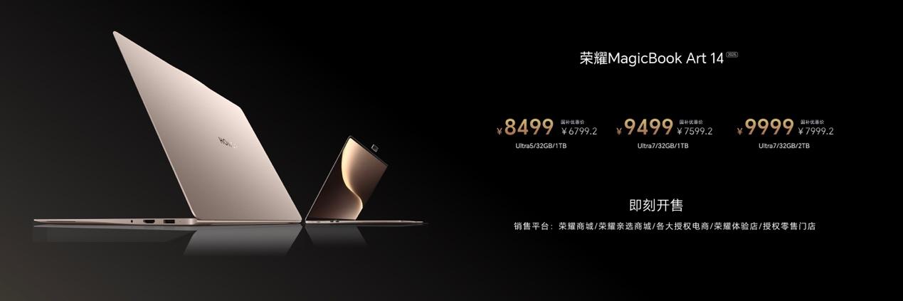 本次發(fā)布會榮耀帶來的AI終端生態(tài)家族的全家桶旗艦新品:榮耀MagicBook Art 14 2025上線一語智控功能,開啟AI PC自動(dòng)駕駛時(shí)代,首銷國補(bǔ)優(yōu)惠價(jià)6799.2元起;