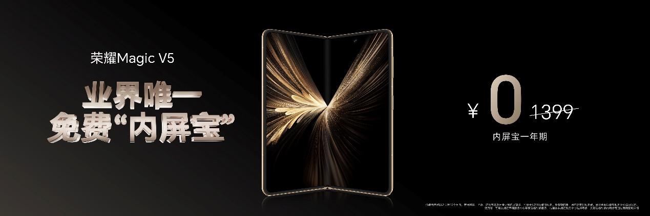 榮耀Magic V5本次配備四款全新配色:曙光金、絲路敦煌、暖白色、絨黑色,售價(jià)8999元起,并發(fā)布業(yè)內(nèi)唯一免費(fèi)“內(nèi)屏寶”。