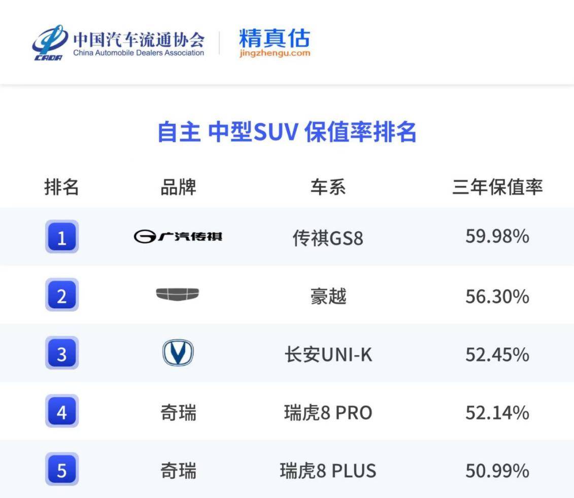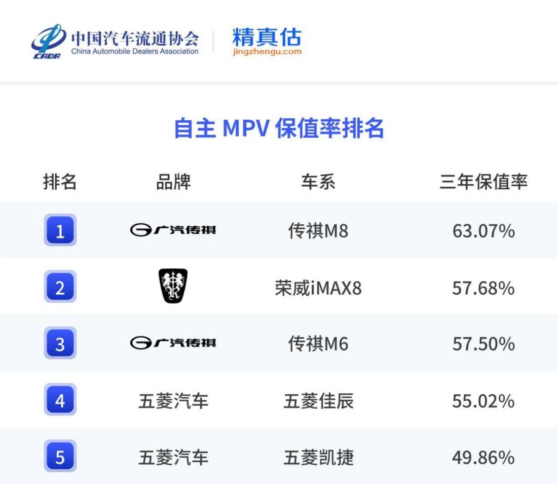 7月3日,中國汽車流通協(xié)會聯(lián)合精真估發(fā)布了《2025年上半年中國汽車保值率研究報告》。在這份堪稱“全生命周期含金量”參考坐標的榜單中,再次以三年57.29%的成績勇奪自主品牌保值率第一,成為當之無愧的行業(yè)標桿。更值得一提的是,傳祺旗下M8、E8、GS8三款主力車型也分別在自主MPV、自主插混MPV、自主中型SUV三年/一年保值率榜單中獨占鰲頭,實現(xiàn)了在核心細分市場的全面領跑。
