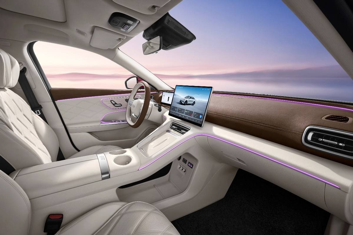 -18-55°C 超大容量冰箱可隨時提供飲品,全車電動調節座椅 + 8 點按摩提升乘坐舒適度。此外,車輛支持高端定制,8 層車漆工藝、10 層座椅結構、雙絎縫座椅工藝、萬噸級大壓鑄工藝等,盡顯豪華品質。