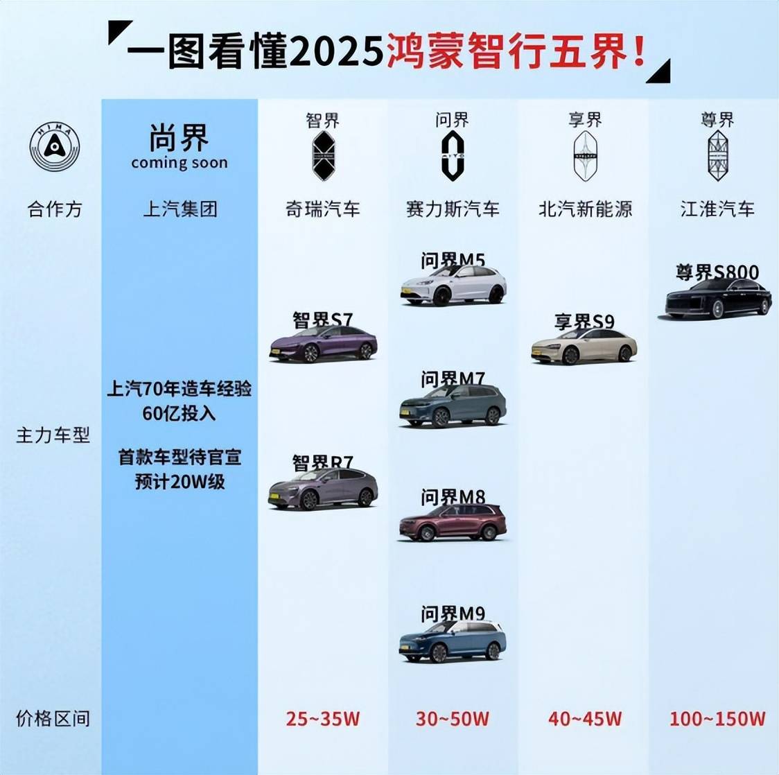 綜合來看,上汽在制造工藝、供應鏈管理和質量控制方面的豐富經驗,與華為在智能駕駛、數字座艙等創新技術領域的領先優勢相結合,為尚界品牌奠定了堅實的發展基礎。對于尚界,華為與上汽都是全情投入,最寶貴的家底,最好的技術,最好的制造統統武裝上。不難看出,尚界的到來意義重大,它是未來扛起鴻蒙智行銷量大旗的角色所在。而在尚界問世之后,鴻蒙智行也正式形成了20-150萬的全價格覆蓋。