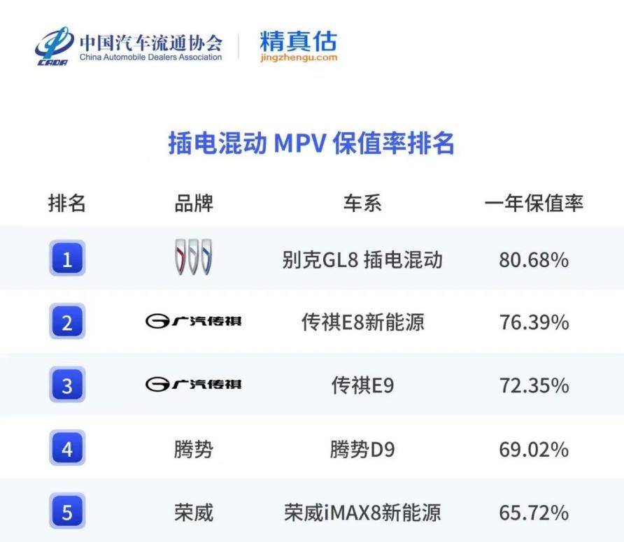 就拿此次斬獲摘得插電混動MPV品類一年保值率桂冠的GL8陸尊PHEV來說,其一年保值率80.68%遠高于騰勢D9等同級別MPV選手,甚至在整個新能源汽車市場中也排名靠前。這也充分說明GL8陸尊PHEV在品牌力、產品力、品質感、價值感等方面都得到了市場的高度認可。