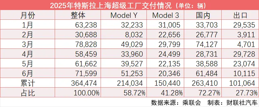 數據顯示,2025年二季度,特斯拉在全球一共生產了410244 輛純電汽車,交付了384122輛。其中,上海超級工廠共交付128803輛,為特斯拉貢獻34%的銷量,這意味著每賣出三輛特斯拉,就有一輛由中國消費者買單。而這一依賴度在6月達到高峰:國內交付61484輛,創季度單月新高,環比增長59%,同比微增3.7%。