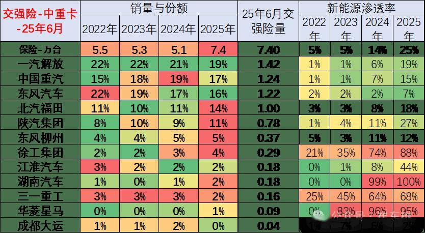 國內市場中重卡市場表現最為優秀的應該是一汽解放、東風汽車、中國重汽等企業,重卡總體表現相對平穩,徐工等部分重卡二線車企電動車滲透率提升。去年出口力度很強,今年國內新能源較多,今年6月燃油車暫時較低。