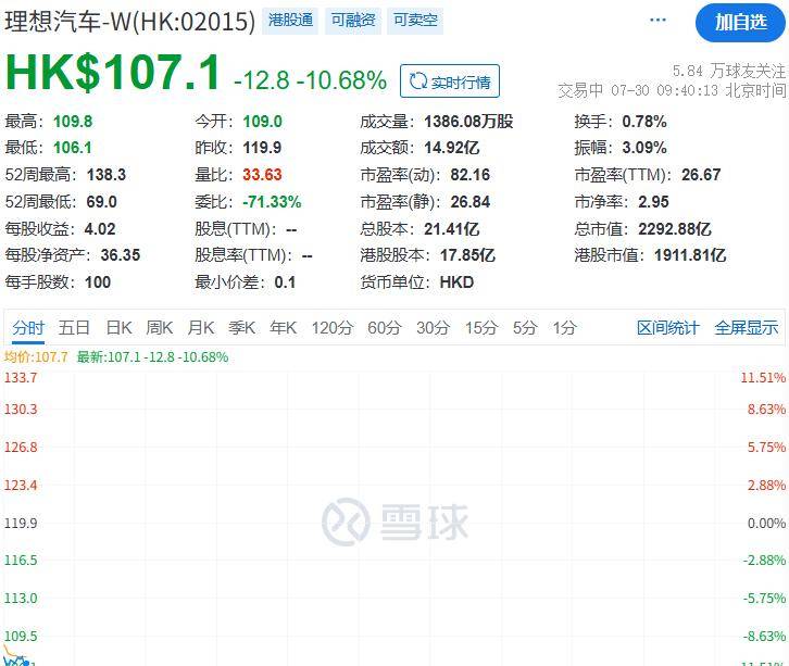 7月29日晚,理想汽車首款純電SUV——理想i8正式發(fā)布。新車共推出Pro、Max、Ultra三個版本,售價區(qū)間為32.18萬至36.98萬元,將于8月20日開啟交付。然而,在新車發(fā)布的同時,理想汽車美股股價卻出現(xiàn)了波動,盤前一度上漲超6%,此后一路下跌,截至收盤跌幅超6%。此外,7月30日上午,理想汽車港股開盤即暴跌超10%。