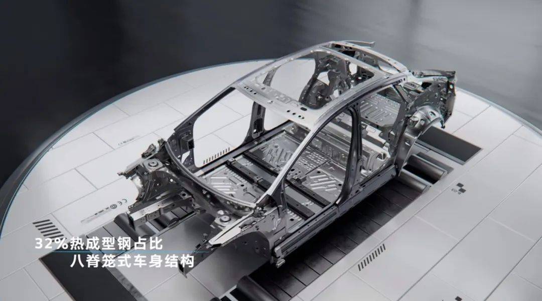 “這些數字比較炫,但車身的被動安全不只是材料的強度,同時也要看車身的結構、材料的用量,以及在車身的分布情況等等。”一汽-大眾并沒有過多去宣傳采用熱成型鋼的2150MPa以上強度數字,而是更看重用量和分布。一汽-大眾的商品高強度鋼材使用占比達81%,其中 A柱、B柱、車身橫梁等關鍵部位均采用熱成型鋼,其中,ID.7 VIZZION的熱成型鋼占比超過三成。