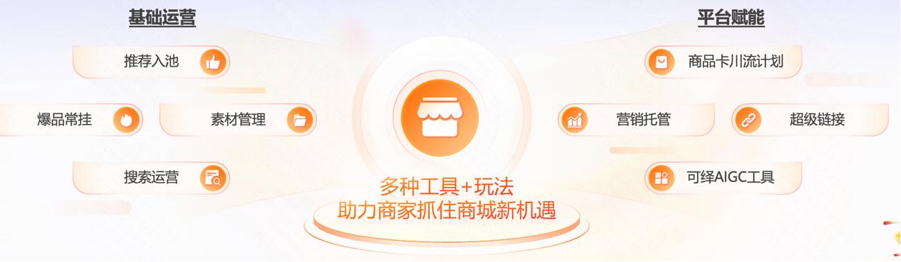 回顧過去,快手商城通過持續的能力迭代和優化,系統性降低了商家進入商城經營的門檻,并重點推動“營銷托管”能力建設,推動平臺智能化、自動化地幫助商家實現流量、素材、爆品的運營,無需商家投入大量人力,也能實現流量和轉化的起步運營。