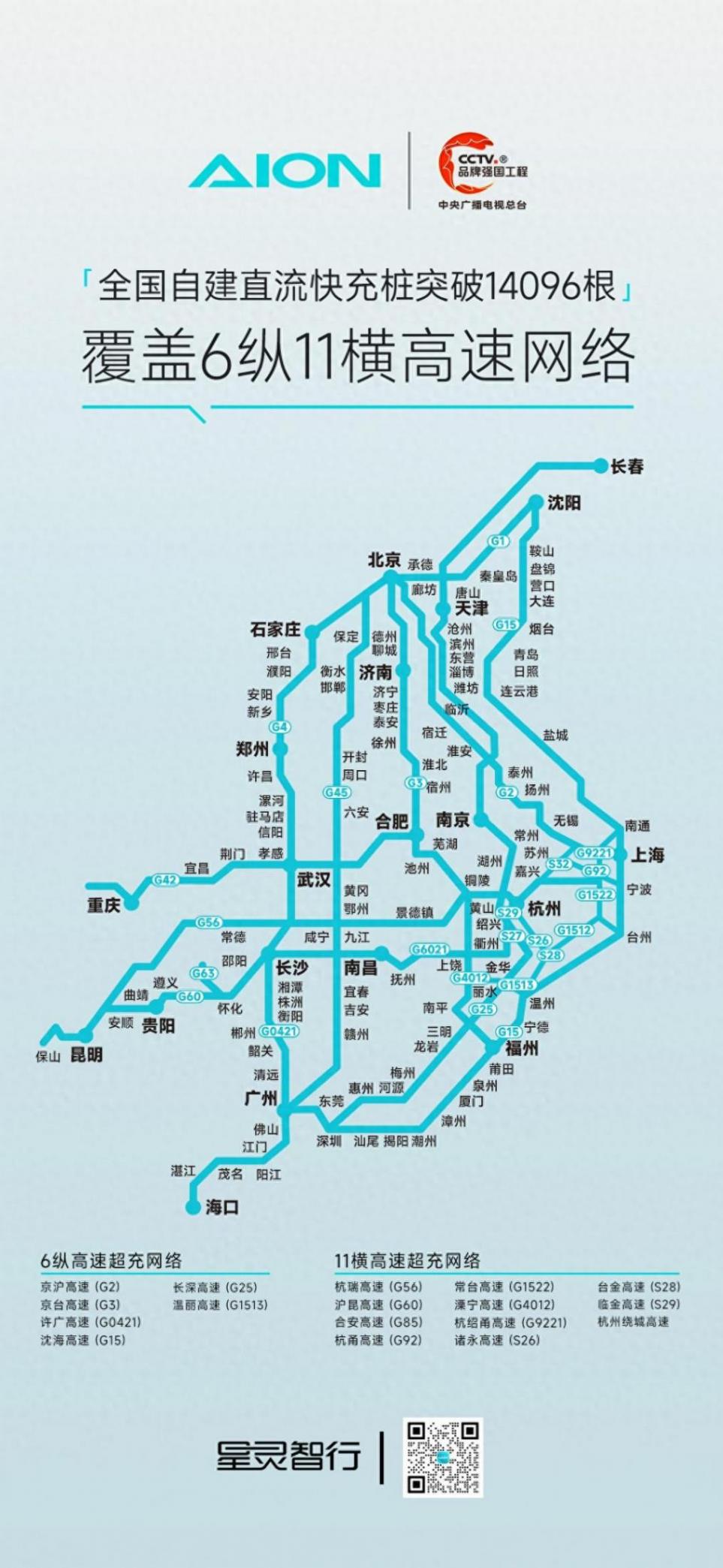 8 月 5 日消息,廣汽埃安今日公布了其最新超充網絡建設進展,宣布完成“6 縱 11 橫”高速超充網絡覆蓋,全國自建直流快充樁突破 14096 根。