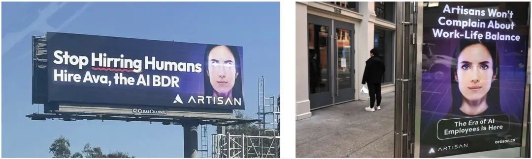 去年,舊金山隨處可見的宣傳牌上貼滿了「停止雇傭人類,雇傭AI銷售智能體Ava」的一則廣告,在全網掀起了熱議。
