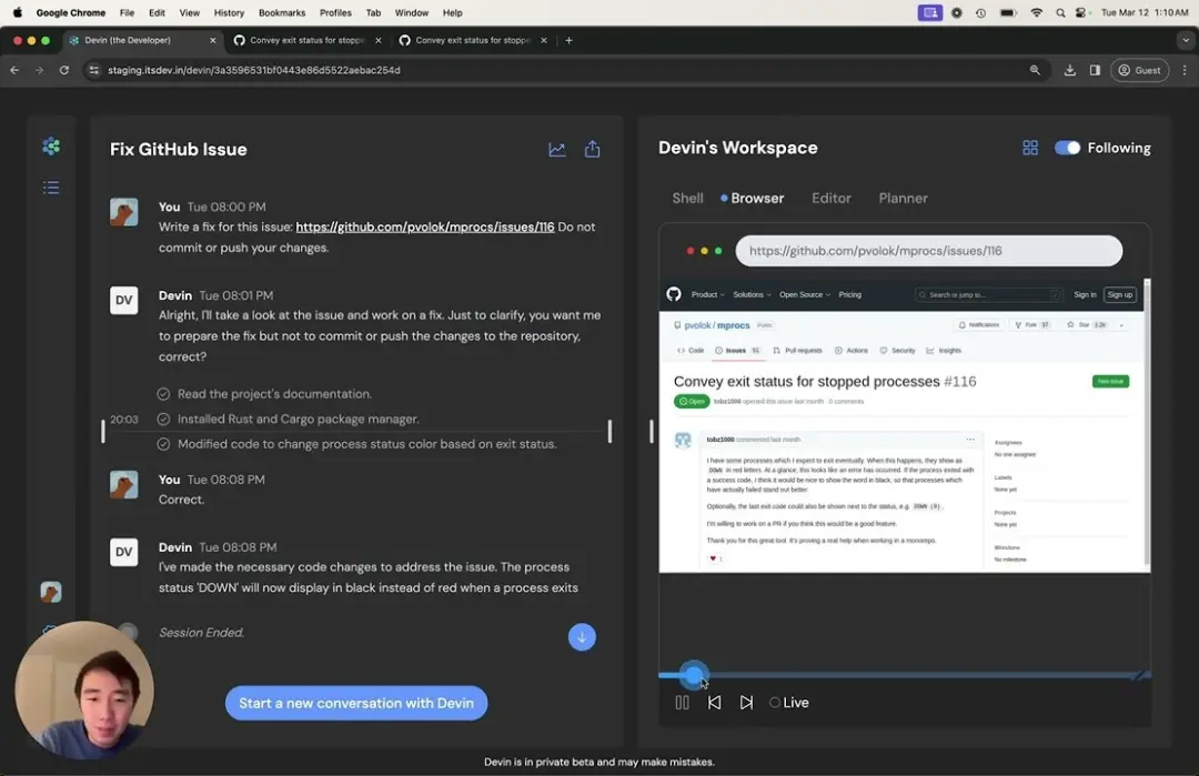 2023年,Scott Wu決定再次創業,他創立了Cognition AI,并且在一年后推出號稱「全球首位AI工程師」的產品Devin。