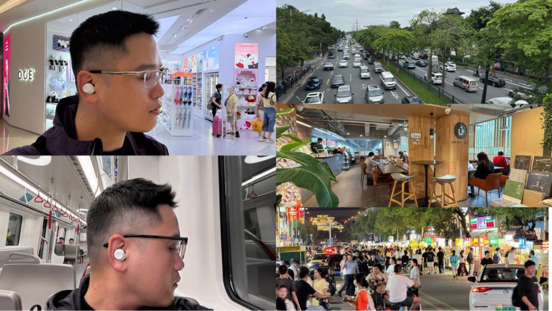 實際感受地鐵、商場、馬路天橋、自習室咖啡廳、夜市繁華馬路廣場等場景的降噪效果