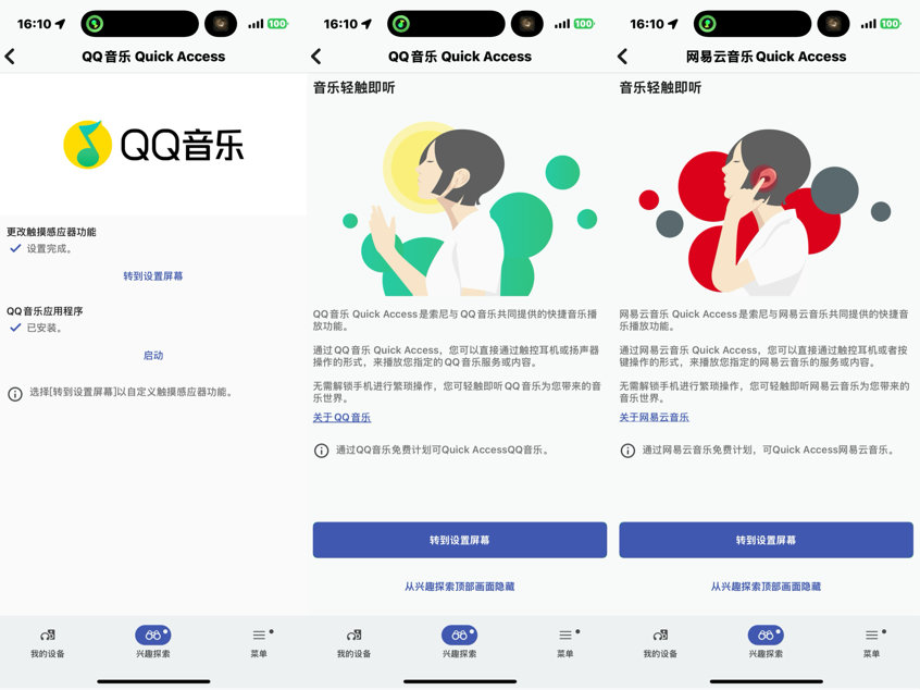 這一代直接本土優化支持QQ音樂和網易云音樂的操作聯動,可通過設置改變左側的雙擊和三連擊快速開啟QQ音樂和網易云音樂的歌單控制和下一首。