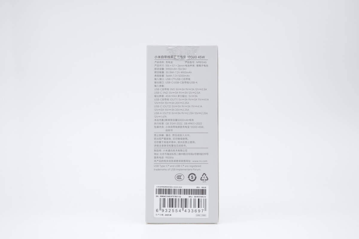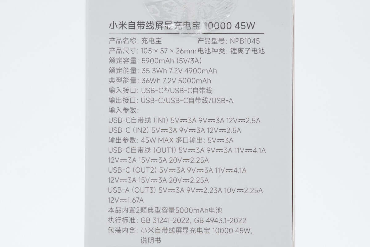 配置方面,充電寶擁有10000mAh容量,支持30W自充以及最高45W輸出,并支持小米私有快充,滿足米系設備快充需求。充電寶通過了國家3C認證,并且可攜帶上飛機。下面就一起來看看這款充電寶的性能如何