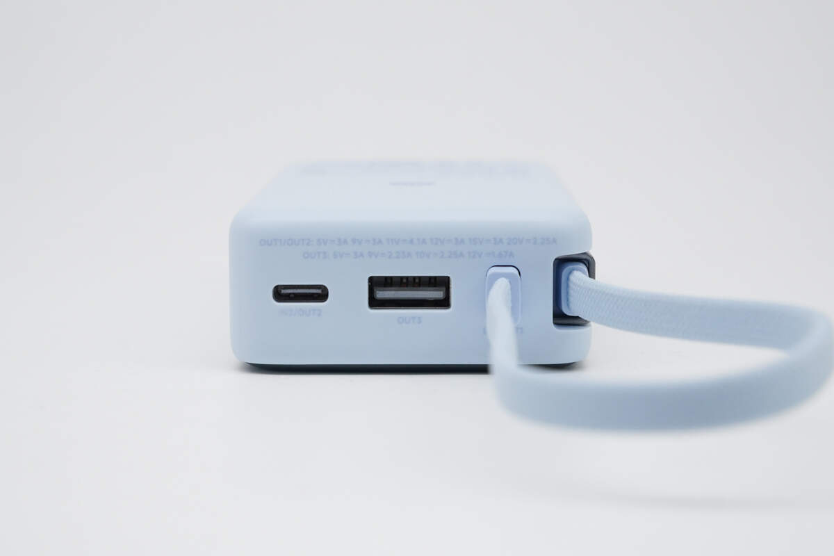 頂部擁有1A1C快充端口,同時右側還設有USB-C編織線。